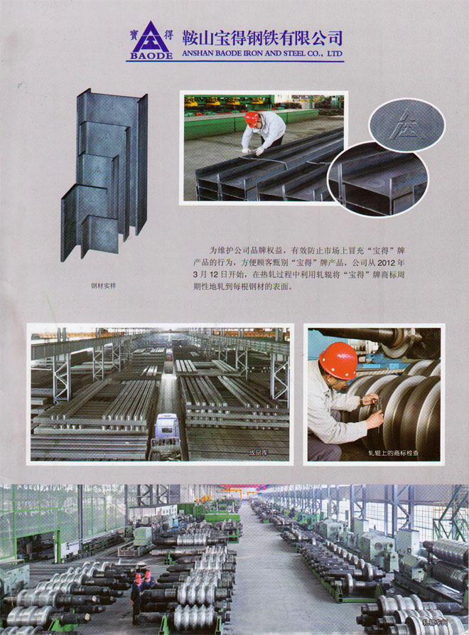 12月19日,公司新版產(chǎn)品樣本制作完成。該樣本全面介紹公司120萬噸型鋼、H型鋼生產(chǎn)線擁有國際先進的工藝、設備情況,以及公司實施名牌戰(zhàn)略生產(chǎn)的高品質(zhì)型鋼產(chǎn)品。該樣本2開4頁,印刷精良,印刷3萬冊,已開始面向客戶發(fā)放。