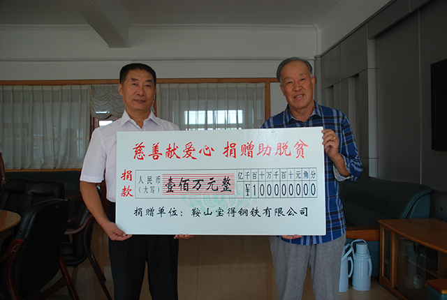 9月1日,《中華人民共和國慈善法》正式頒布實施的當天下午,鞍山寶得鋼鐵公司的一位代表風塵仆仆來到市慈善總會,捐出專項善款100萬元,并轉達了寶得公司董事長張永全的話:“我要兌現(xiàn)承諾,只要企業(yè)經濟效益好了,只要我們還有這個能力,就要繼續(xù)獻愛心,就要幫助那些有困難的人。”